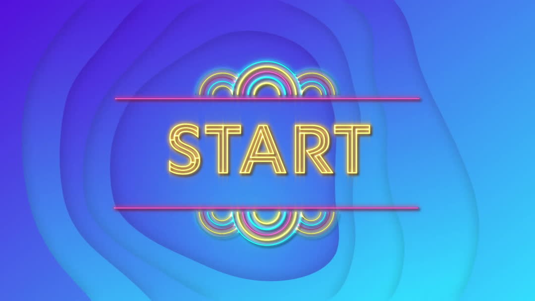 Dynamic and vibrant start animation featuring layered blue background with bright colorful arcs. Perfect for video intros, multimedia projects, creative presentations, tech advertisement, or educational videos needing a lively and energetic entrance.