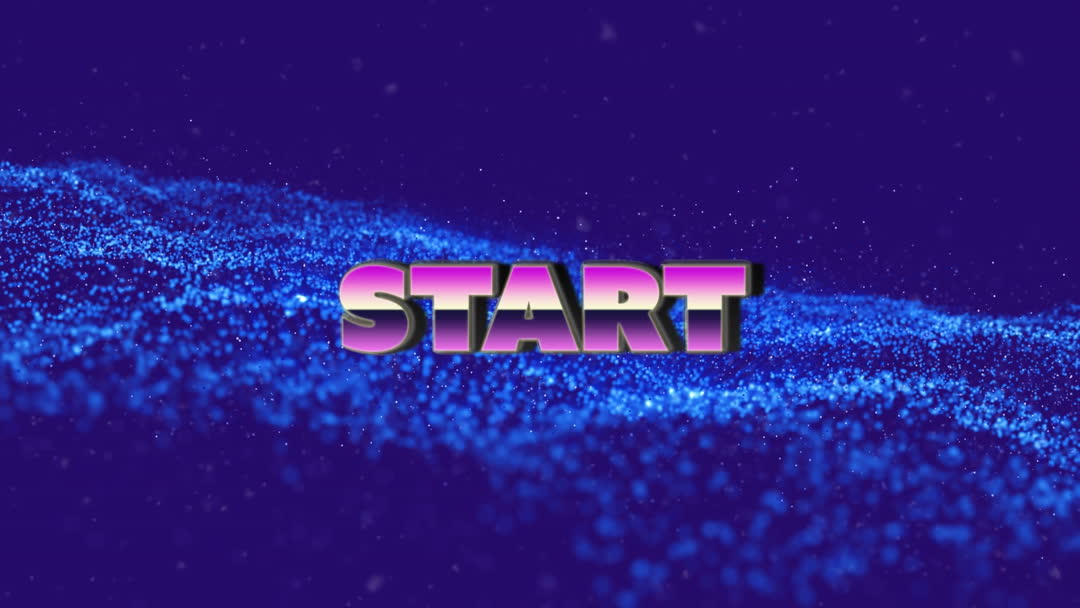 Vibrant Start Text with Dynamic Particle Background Video