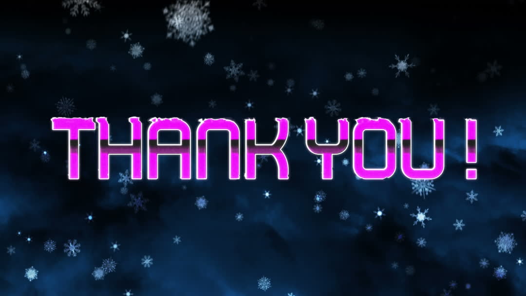 Bright and engaging thank you message with glowing snowflakes. Ideal for festive greetings, social media posts, and winter-themed videos. Use to express gratitude during holiday seasons or enhance digital communications with a touch of creativity.