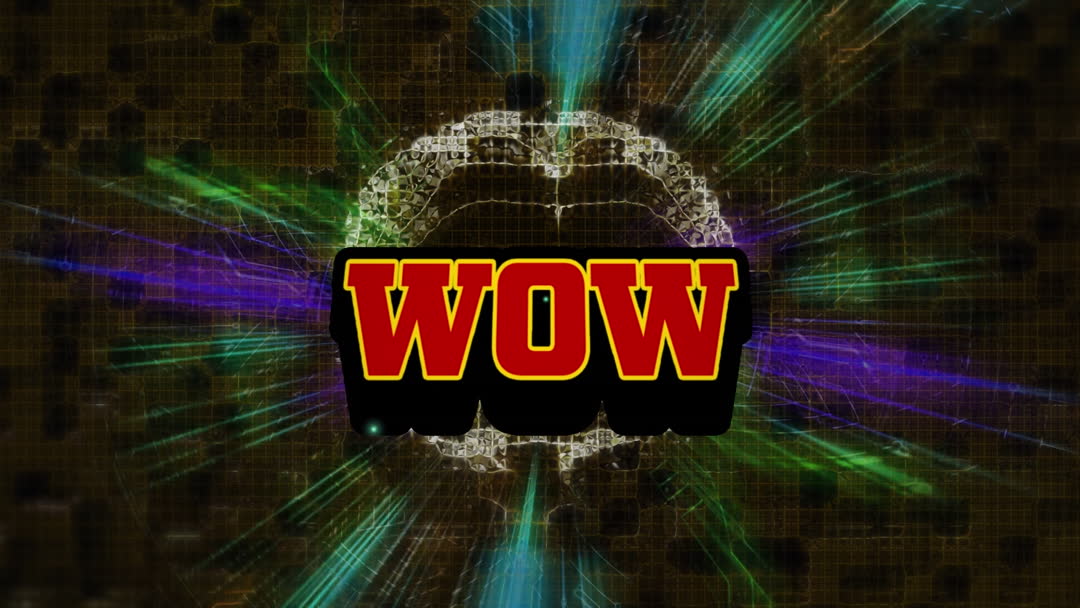 Digital art featuring bold 'Wow' text with an explosion effect overlaid on brain videory with green and blue lines. Represents the excitement of technology and gaming. Ideal for gaming promos, tech events, or educational communications.