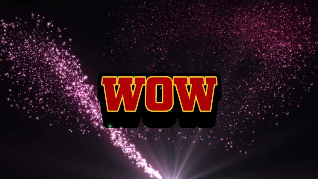 Dynamic graphic displaying bright red "WOW" text overlaying a cosmic scene, featuring shooting stars and a glow of sparkling light bursts. Ideal for use in exciting presentations, eye-catching banners, motivational videos, tech-themed projects, or for dynamic advertising. Perfect for adding a pop of energy and highlighting key moments.
