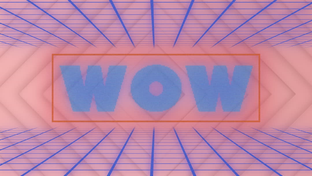 Vibrant Wow Text with Retro 3D Grid Background Video