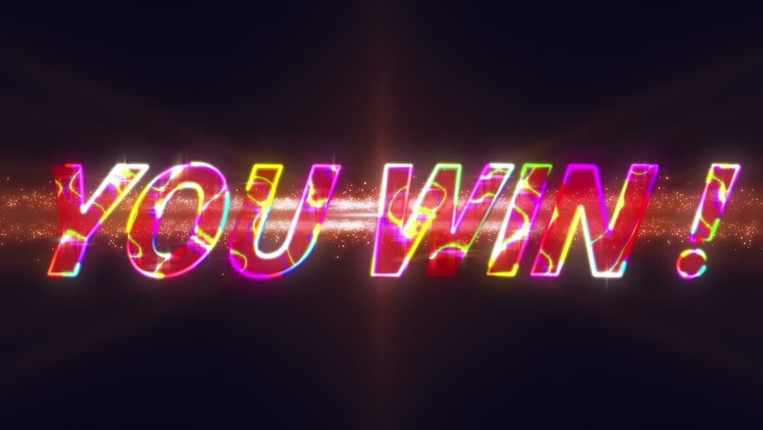 - Vibrant 'You Win' Text with Holographic Effects on Dark Background
