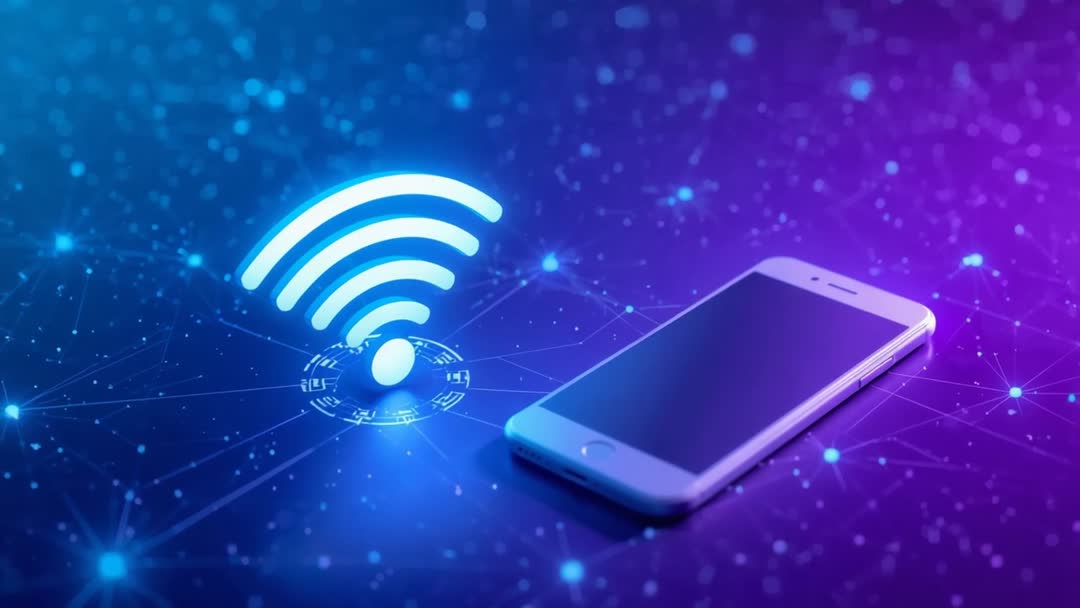 AI Generated Image. Clip showing smartphone connecting to WiFi via glowing hub on futuristic digital network grid, with nodes and data lines pulsing. Visuals highlighting wireless connectivity, signal strength, data transfer, and network topology in neon blue and purple tones. Suitable for tech presentations, app demos, telecom marketing, cybersecurity training, IoT explainers, and website hero headers. Can be used as background loop for social media ads, conference openers, product launch videos, and editorial content about internet infrastructure, 5G rollout, or smart home connectivity.