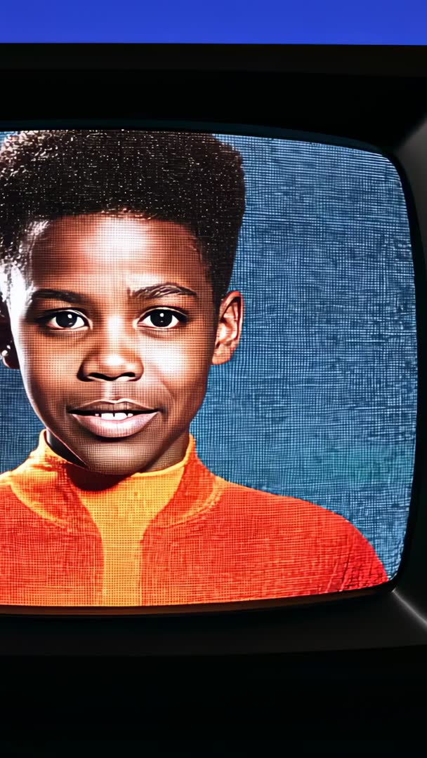 AI Generated Image. Vertical video frame showing teen presenter through vintage CRT TV with visible scanlines and rounded bezel. Close-up portrait featuring red sweater against blue backdrop, subtle lip motion suggesting speech without audio. Retro analog texture adding nostalgic mood and visual interest for social media, broadcast design, title sequence, marketing campaign. Useful for promoting youth programming, streaming channel branding, throwback television concepts, or creative projects about communication and media. Pairing with retro typography, grain overlays, and scanline transitions for authentic 1980s look and mobile-first presentation. Vertical-safe composition suiting reels, stories, mobile ads, and on-platform thumbnails while retaining strong facial focus for presenter-led messaging.
