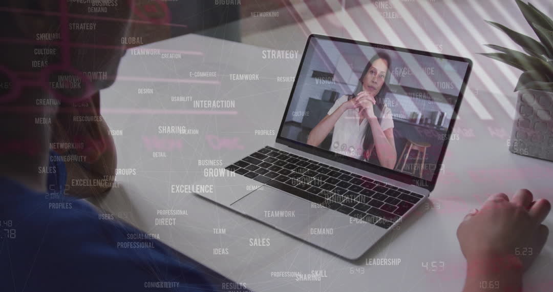 - Virtual Business Meeting on Computer with Financial Data Animation