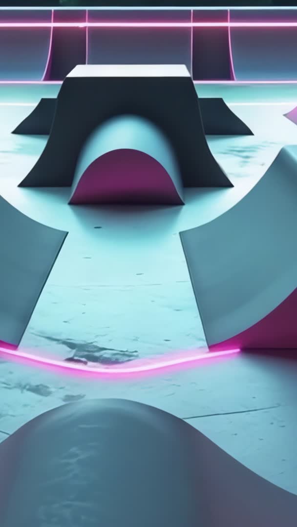 AI Generated Image. Showing virtual camera moving forward-down through neon-lit cyberpunk tunnel, revealing repeating arch echoes and reflective marble-like floor. Featuring vibrant cyan and magenta neon accents, soft reflections, smooth 3D geometry, and subtle camera motion for immersive effect. Providing versatile clip for use as intro for tech, gaming, music video, website hero, mobile background, app demo, or social media story. Working well as loopable ambient backdrop, VJ visual, stage projection, advertising spot, or product reveal overlay. Delivering retrofuturistic synthwave mood suitable for branding, UX animation, trailers, and transitions in vertical format.