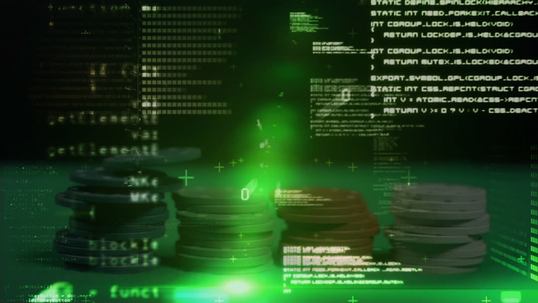 Virtual Casino Chips Surrounded by Digital Coding Video
