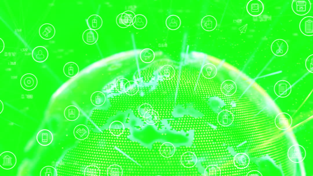 Virtual Interaction Network with Green Digital Globe Overlay Video