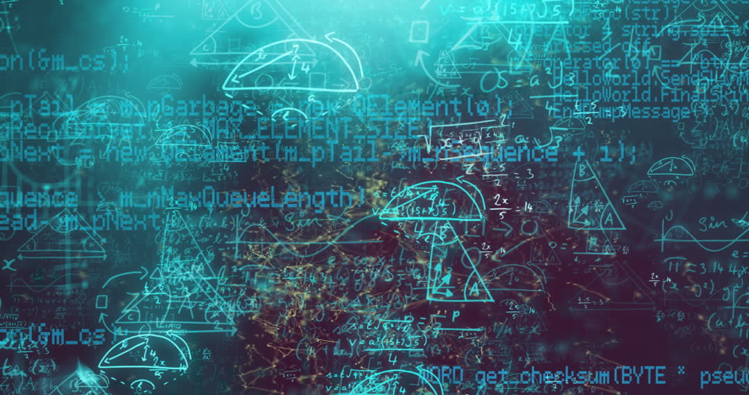 Abstract elements highlighting a blend of complex mathematical equations and code concept visualization. Useful for educational content, posters about technology, representations of coding processes, and visual aids in academic and tech-related presentations.