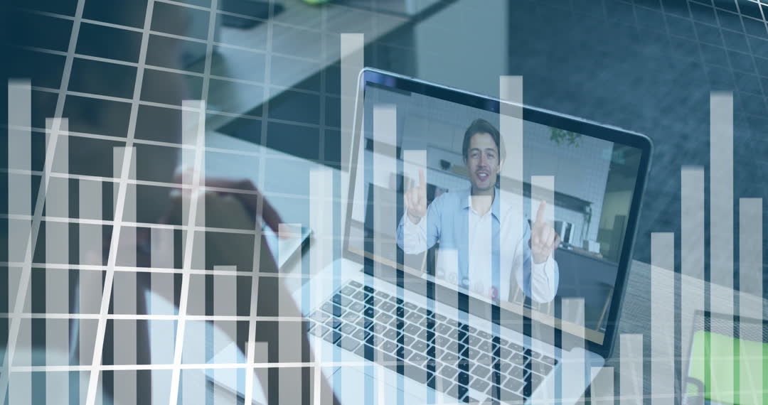 Virtual Meeting overlaid with Data Analytics Graphics Video