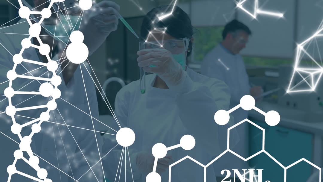 Laboratory setting blending virtual reality technology with advanced research. Virtual connections and molecular overlays signify integration of digital advancements in science. Suitable for illustrating the convergence of technology and research, future of scientific exploration, or innovative approaches in laboratories.