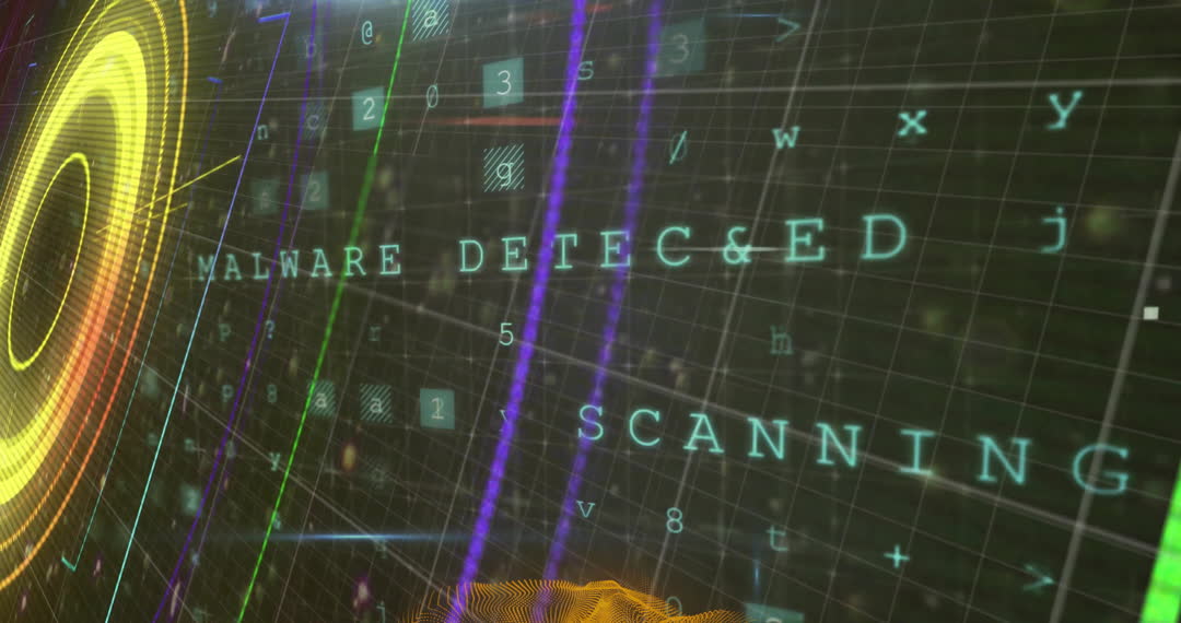 Visual representation of malware detection and scanning in a digital environment. Great for illustrating concepts in cybersecurity, digital protection, and IT solutions. Useful for educational videos, technical presentations, and cybersecurity training materials.