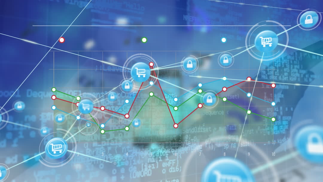 This scene depicts interconnected data points and trending graphs over a complex digital interface, symbolizing modern data processing and global networking. It can be used to illustrate innovative technology concepts, business analytics discussions, and presentations focused on digital transformation or cybersecurity.