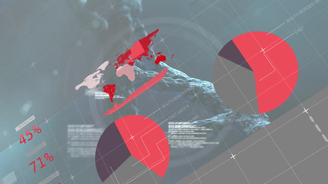 Animation shows digital elements like global maps and dynamic pie charts overlaid on a DNA strand, highlighting concepts in biotechnology and data analytics. Ideal for tech presentations, bioinformatics education, scientific research topics, or explaining advancements in genetic mapping.