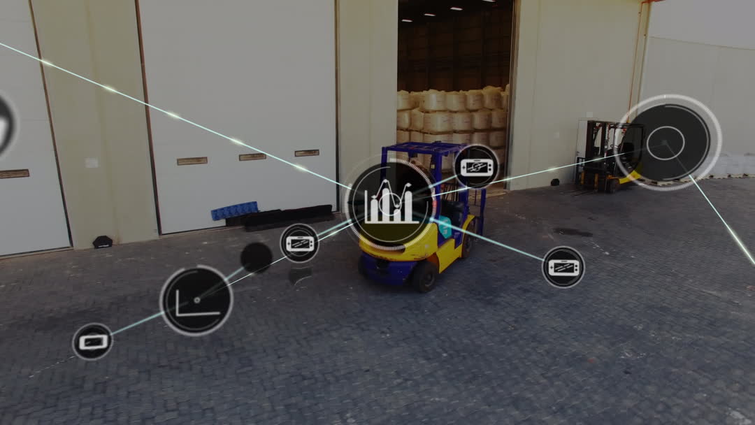 Warehouse Forklift Operation with Connected Icons Concept Video