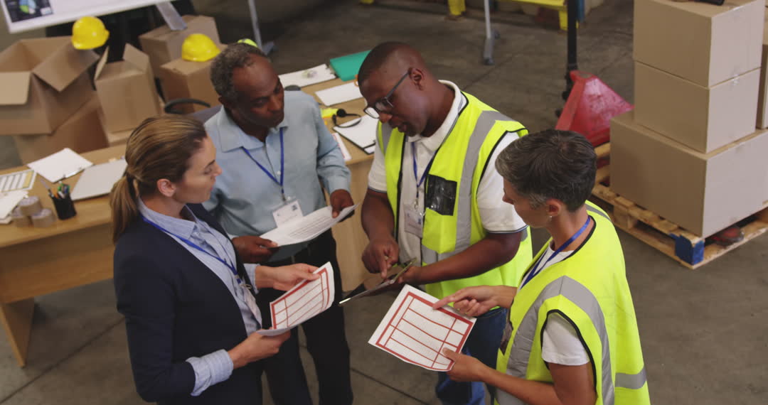 - Warehouse Team Collaborating on Logistics in Distribution Center