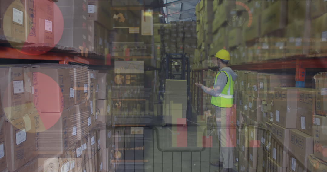 - Warehouse Worker Analyzing Digital Data Interfaces