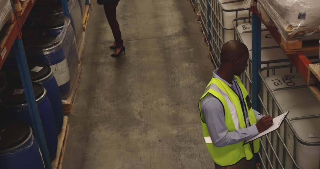 - Warehouse Worker Doing Inventory Inspection in Storage Bays