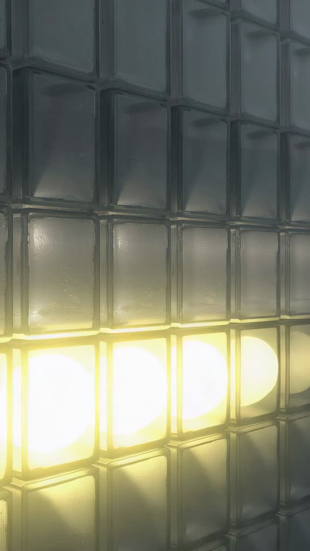 - Warm Bulbs Illuminating Glass Block Wall Vertical Video, Ambient Glow Across Grid