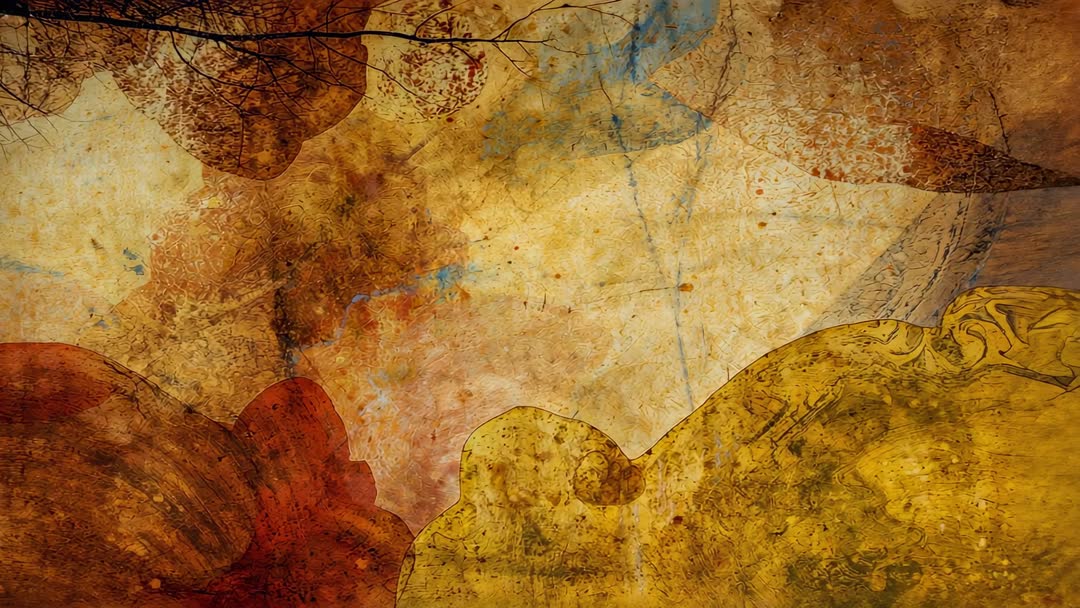 AI Generated Image. Video showcases rich blend of earthy tones with overlapping organic patterns, evoking an aged, vintage look. The warm ochre and amber patches intermingle to create a rich textural display, reminiscent of natural weathering. Suitable for background use in multimedia projects, artistic visual displays, or any design work needing a touch of warm, vintage flair.