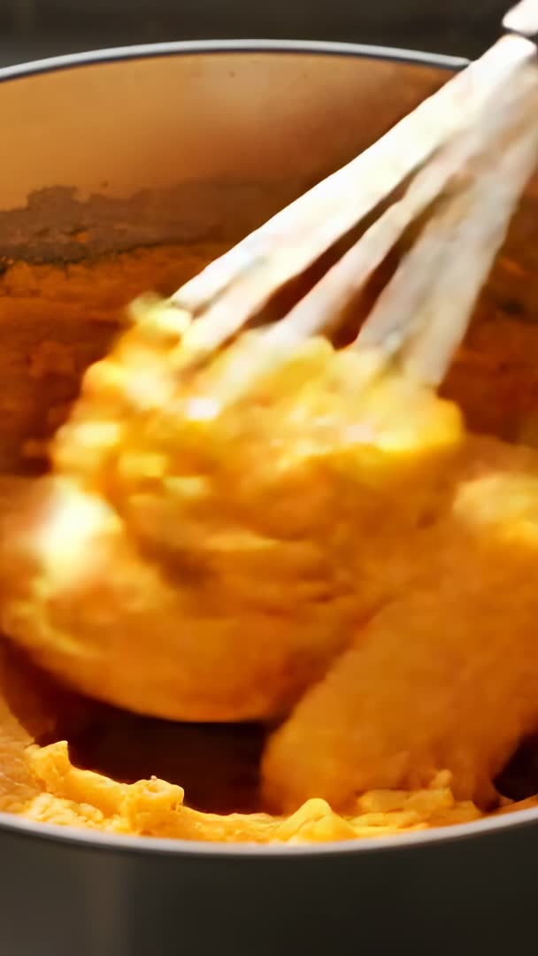 - Whisking Pumpkin Purée in Stainless Pot | Vertical Video Showing Creamy Orange Mash Swirling