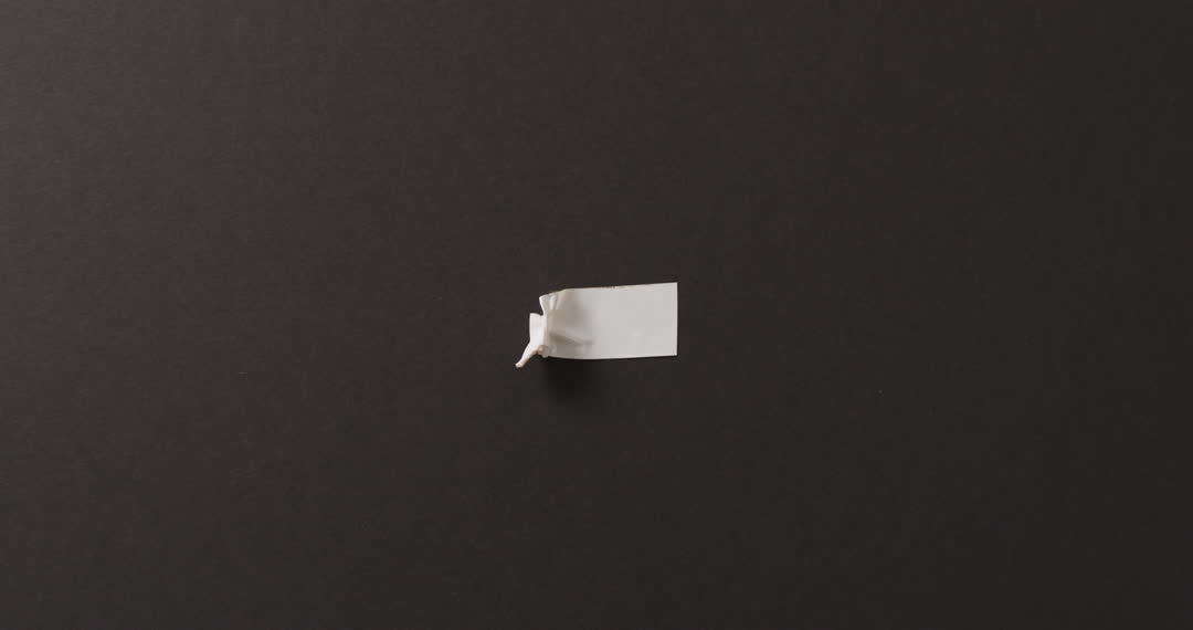 Close-up of a small, torn piece of white paper against a solid black background, offering an abstract and minimalist composition. Great for illustrating themes of simplicity, design, or contrast in graphic design projects or educational materials. Ideal for creative concepts in marketing or presentations focused on minimalism or change.