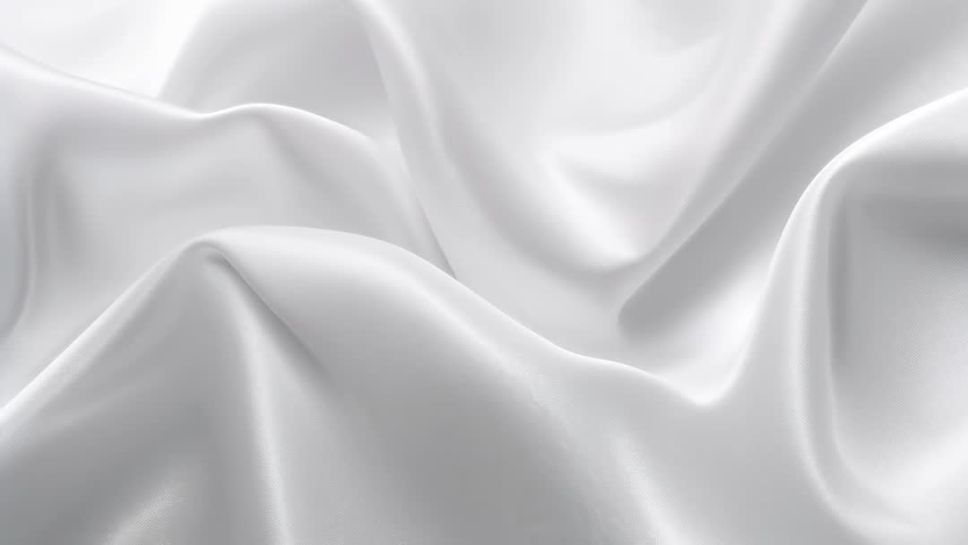 AI Generated Image. Flowing under soft directional light, white satin fabric revealing smooth glossy folds and delicate sheen. Camera capturing close-up drape and texture, emphasizing highlights, shadows, and subtle creases. Neutral white palette creating calm luxurious mood suitable for high-end branding. Ideal for background use in fashion and beauty videos, product promos, website hero banners, social media stories, and packaging mockups. Providing seamless loop potential for motion backgrounds, transition overlays, and animated title cards. Allowing easy color grading and text or logo overlay while preserving fabric detail and sheen.