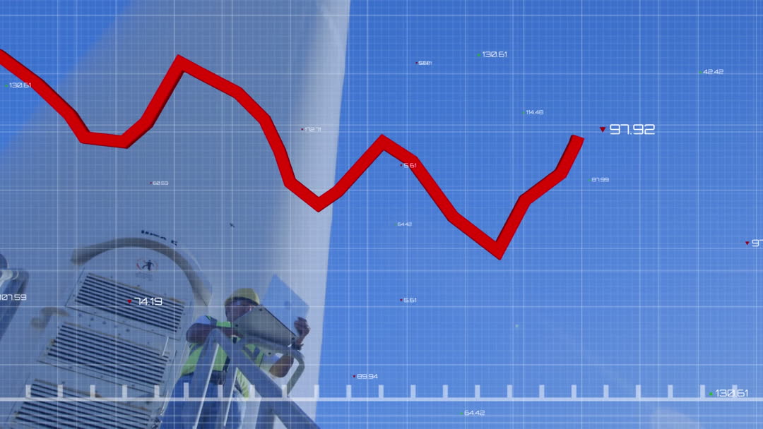 Wind Energy Data with Red Line Overlay on Turbine Background Video