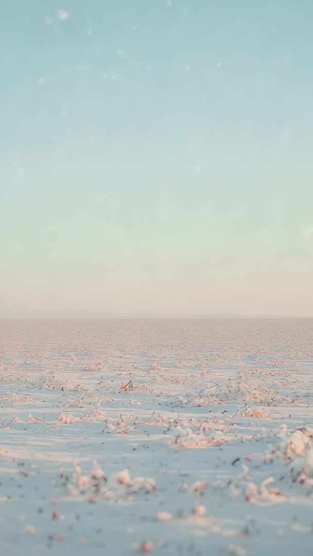 AI Generated Image. Vertical clip showing wind lifting fine snow plumes across frozen plain under pastel sunrise sky. Scene conveying minimal winter calm, drifting snowflakes, and wide open horizon. Footage working well for mobile vertical ads, social media reels, Instagram Stories, and TikTok content. Useful for calming background in meditation apps, wellness channels, seasonal greetings, travel and climate storytelling. Loop-friendly composition and soft color palette supporting cinematic overlays, text placement, and lower third graphics. Recommended export as vertical MP4 for web and social use.