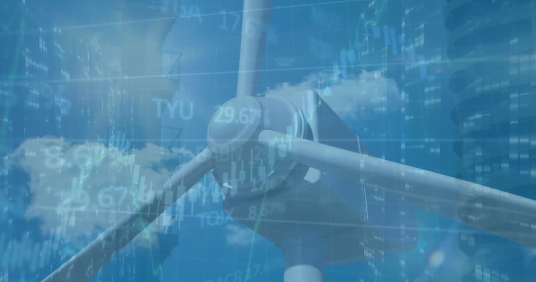 - Wind Turbine and Digital Chart Overlay Illustrating Market Trends