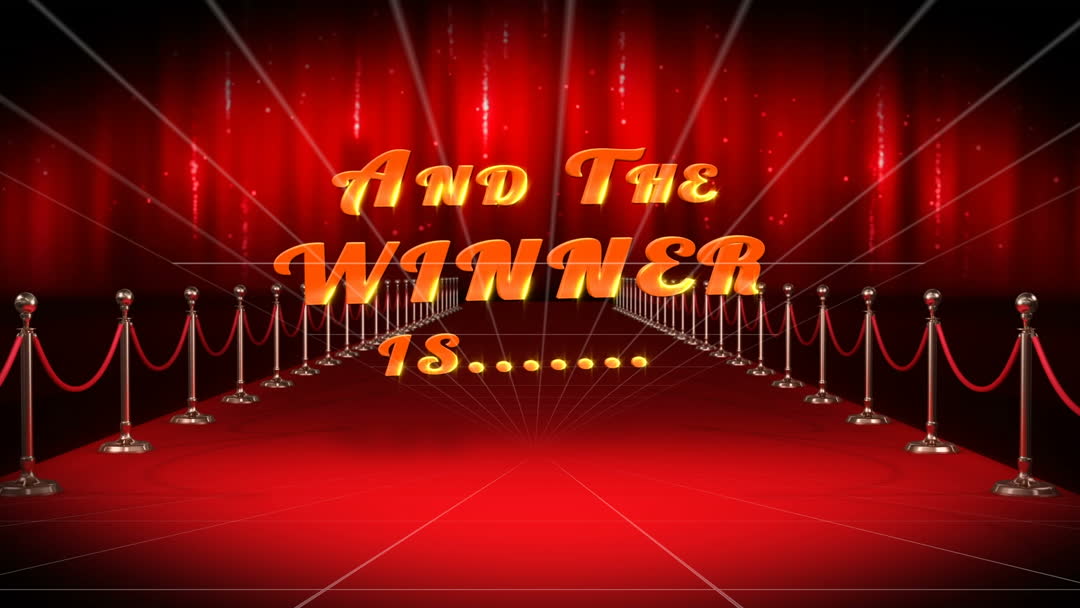 Elaborate text animation showcasing a winner's announcement over a red carpet. Ideal for videos or presentations related to ceremonies, award shows, or events emphasizing celebration and achievement.