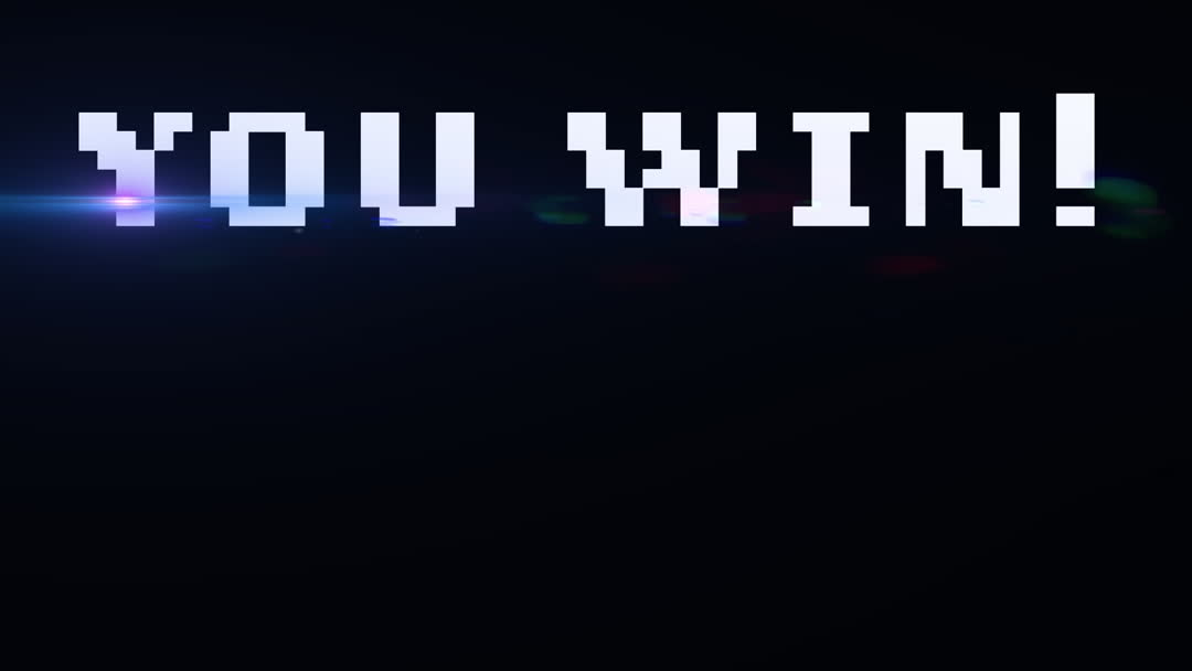 Winning Notification with Retro Pixel Text and Light Flare Video