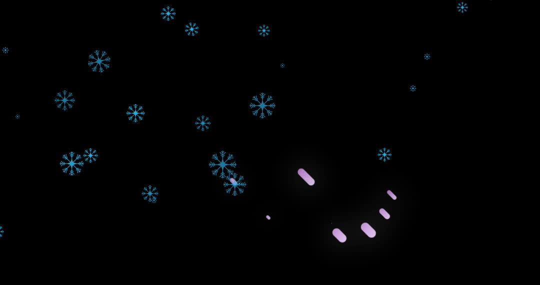 Digital animation features bright purple lines and blue snowflakes against black background, representing winter or festive moods. Abstract geometric elements suggest movement and dynamic style, suitable for use in creative projects, advertisements, seasonal greetings, or illustrative design contexts emphasizing winter themes.