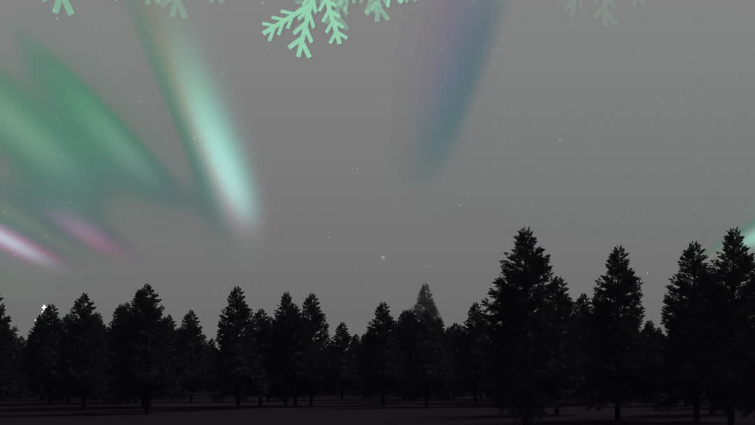 - Winter Night Sky with Colorful Digital Aurora and Snowflakes