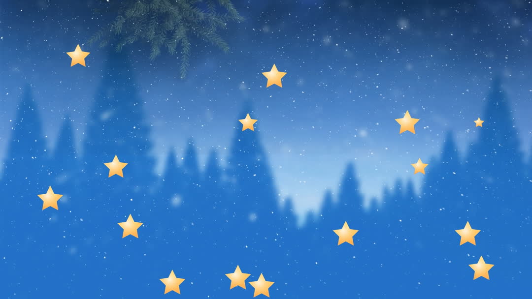 Animated scene shows magical night sky with stars across snowy forest, ideal as a festive Christmas background. Excellent for holiday greetings, presentations, winter-themed projects, and traditional Christmas celebrations.