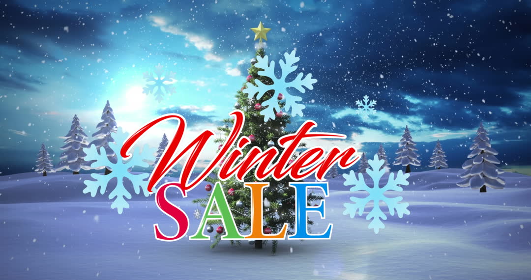 - Winter Sale Graphic on Festive Snowy Scene with Christmas Tree
