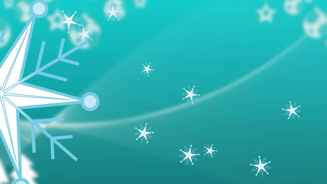 Blue background adorned with animated snowflakes creates festive spirit. Perfect for holiday greetings, Christmas marketing materials, or winter-themed presentations. Elements evoke feelings of cold, seasonal joy suitable for celebratory occasions.