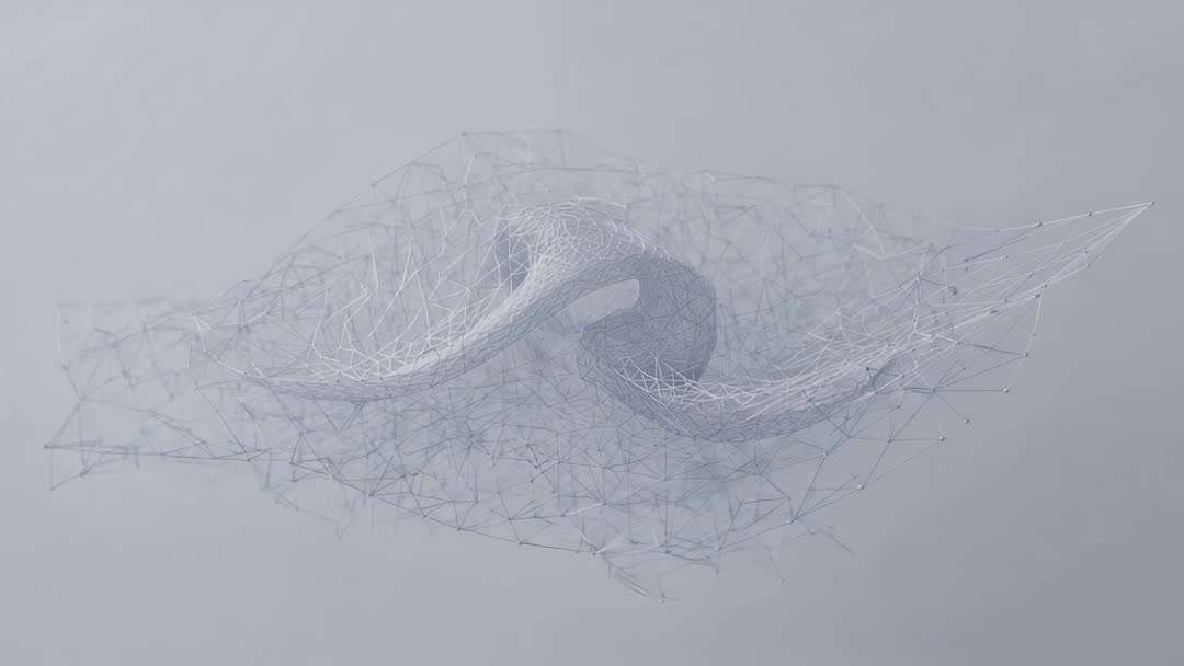 AI Generated Video. Looping 4K video featuring translucent wireframe mesh morphing into twisting torus formation. Fine node-and-line lattice flowing and reconfiguring, creating delicate strands and open network planes against soft gray gradient. Subtle depth and studio-style lighting enhancing sense of motion and dimensionality. Suited for technology branding, UI backgrounds, website hero loops, presentation intro slides, broadcast lower thirds, VJ visuals, and scientific or data visualization. Ready for seamless looping, slow-motion playback, and layering with color grading, titles, or logo overlays to build modern, minimal tech visuals.