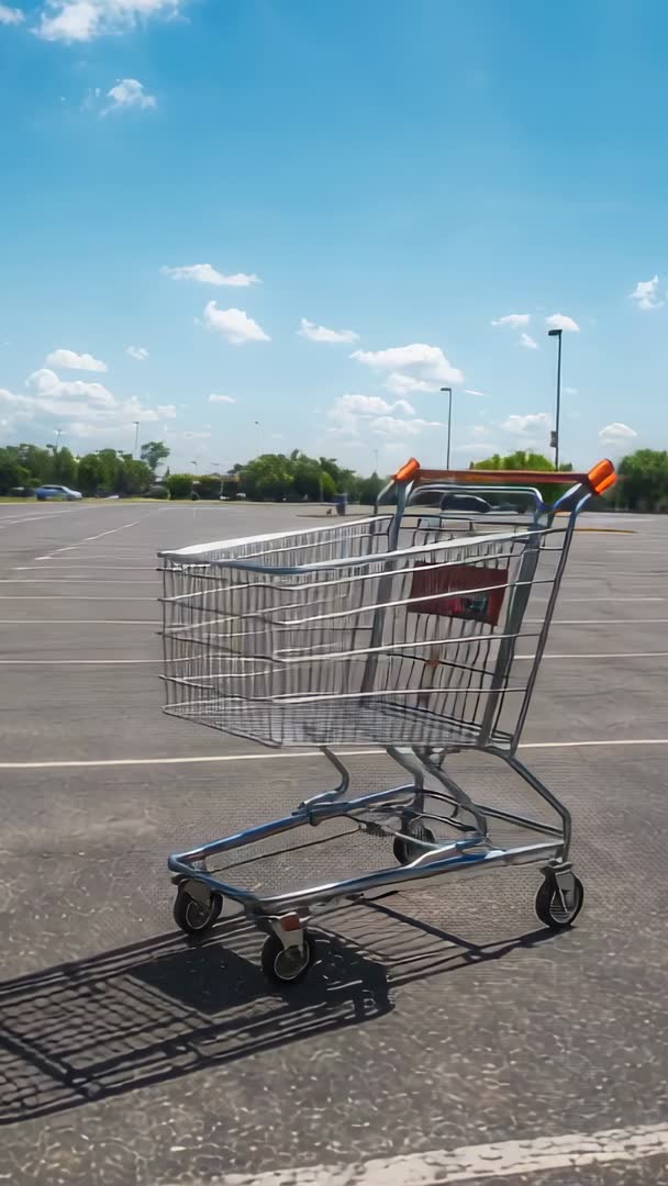 - Wobbling Shopping Cart Rolling Across Empty Parking Lot on Sunny Day Vertical Mobile Footage