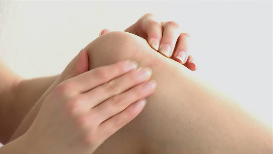 Woman Applying Ointment to Aching Knee Joint Video
