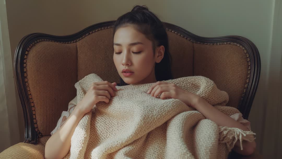 <a target="_blank" href=https://pikwizard.com/video/woman-engaging-in-reflection-wrapped-in-blanket-on-armchair/42785b5e10235a7c1e583edd4a267367/>PikWizard</a>