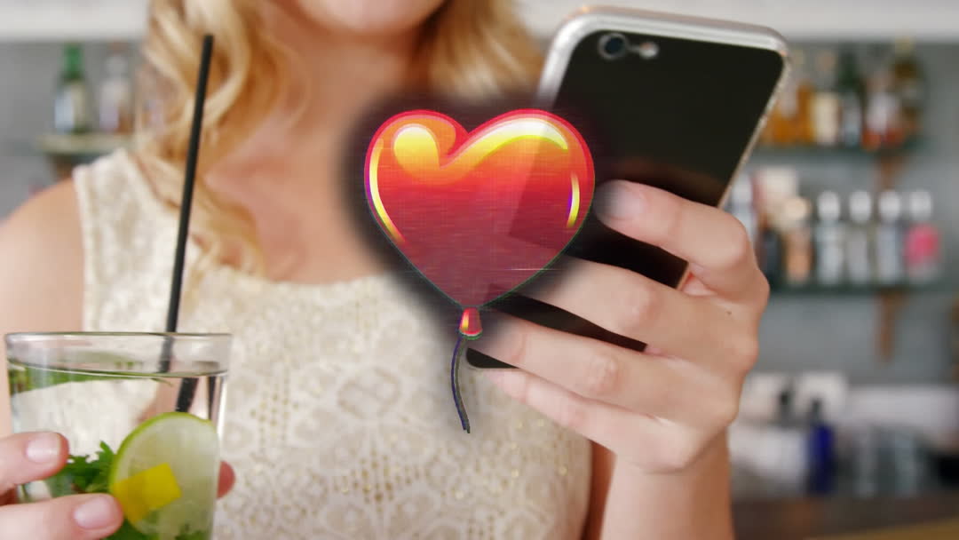 Woman Engaging with Smartphone and Social Media Heart Icon Overlay Video