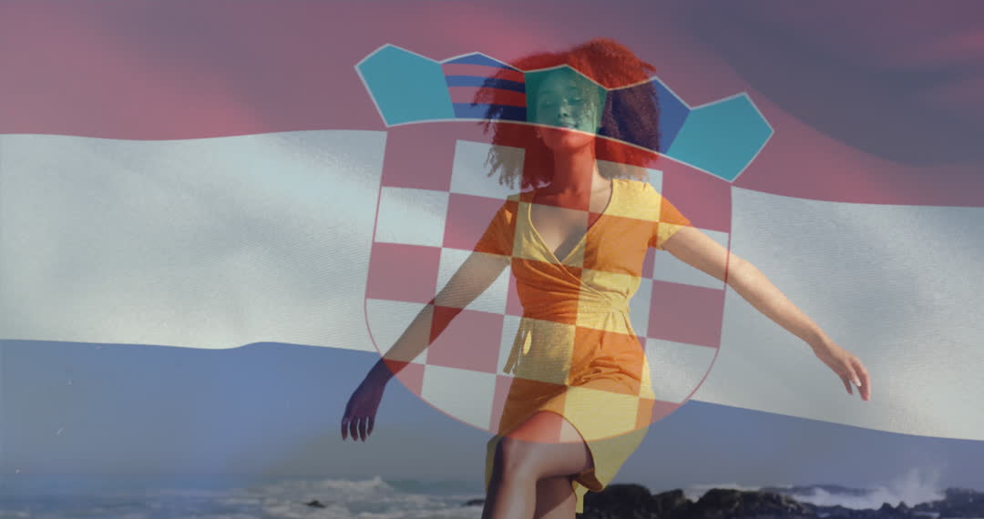 - Woman Enjoying Breeze at Beach Overlaid with Croatian Flag
