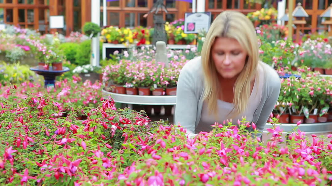 - Woman Enjoying Fragrant Flowers in Vibrant Garden Center
