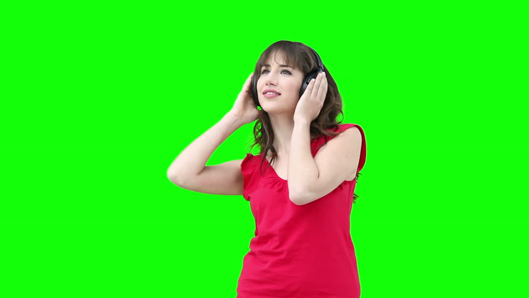 - Woman Enjoying Music with Headphones on Isolated Green Chroma Key