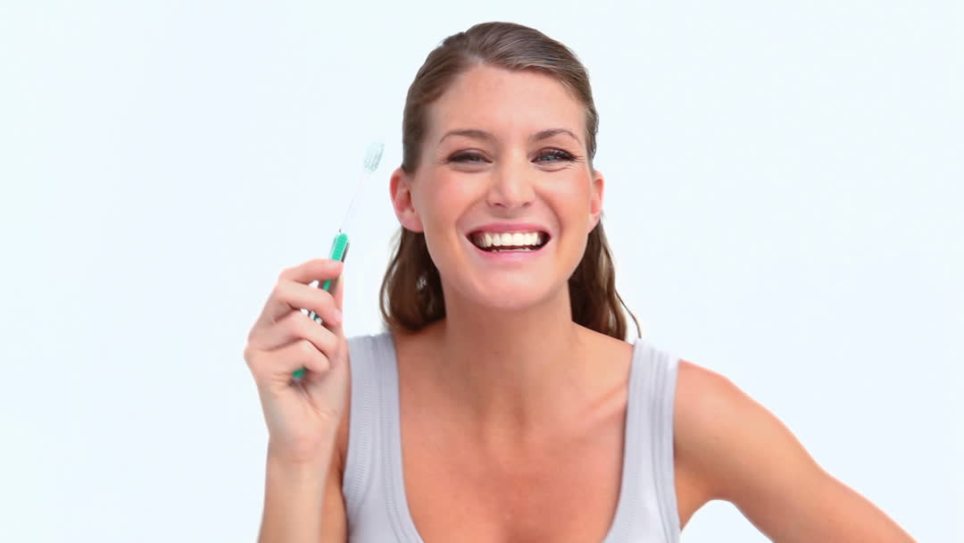 - Woman Enjoying Oral Hygiene Routine with Toothbrush