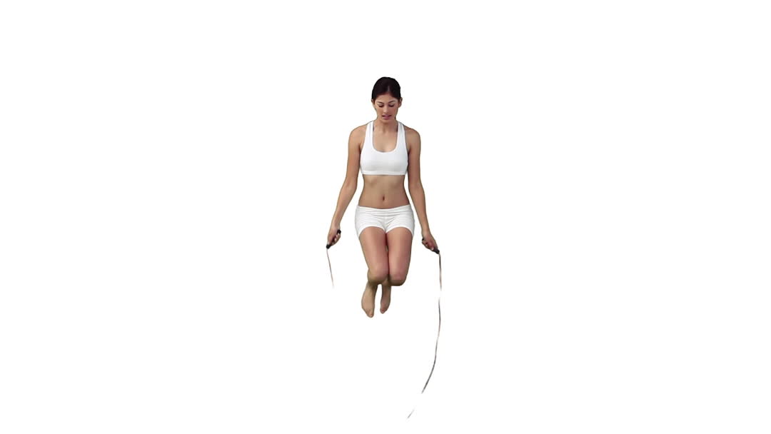 - Woman Exercises with Skipping Rope in Motion on White Background