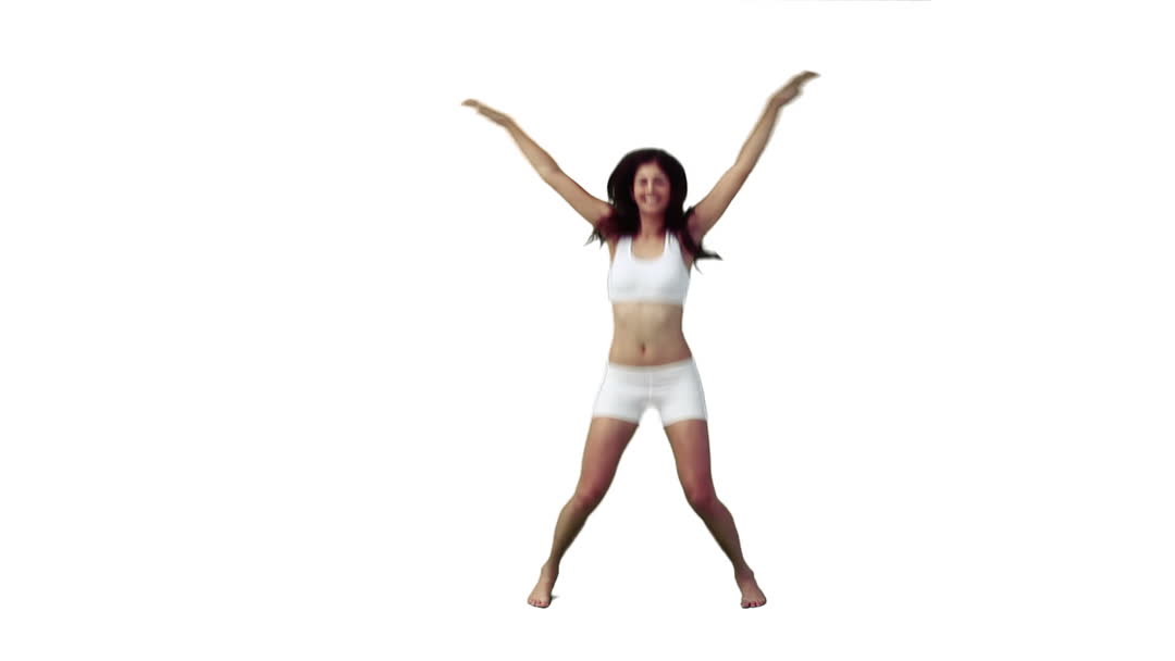- Woman Exercising, Performing Jumping Jacks on White Background