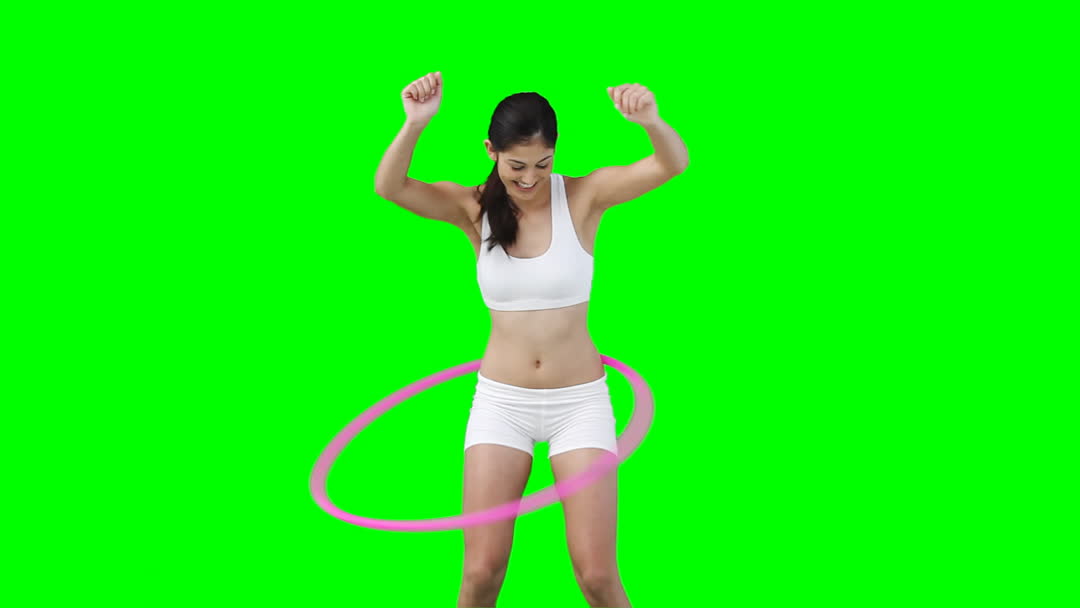 - Woman Exercising with Hula Hoop on Green Chroma Key Background